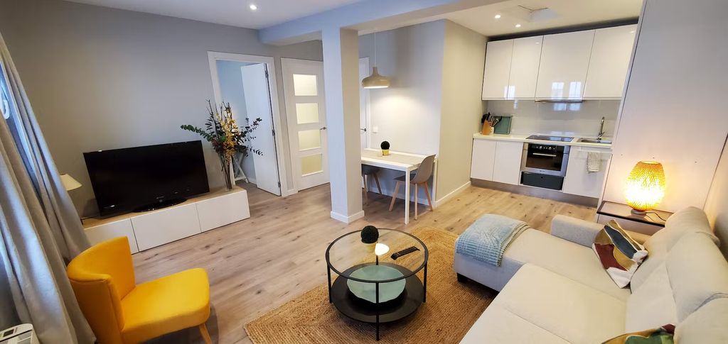 Beautiful apartment for rent in Prague! Grab this amazing chance to move into this recently renovated place, characterized by its neat modern design. The apartment has been renovated at the end of 2021. It consists of 2 bedrooms, a bathroom, a living room with a sofa and TV, a fully equipped kitchen, a washing machine, and a dining table with chairs. Fully equipped: furniture, bedding, towels, and appliances. Very bright and quiet apartment near the subway, buses, all kinds of shops, parks, a few minutes from the university and Paseo de la Castellana.